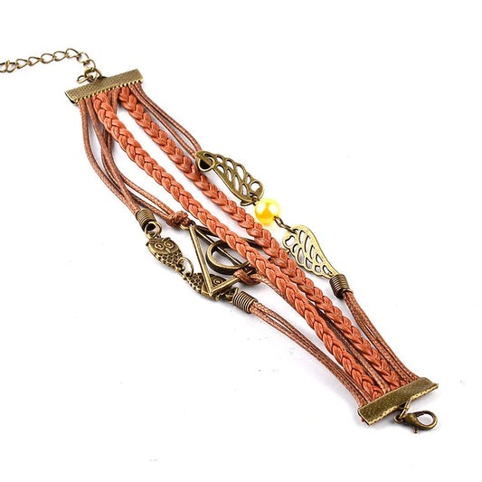 Pulsera de Cuero Vintage Retro Steampunk con Colgante de Búho y Alas de Triángulo