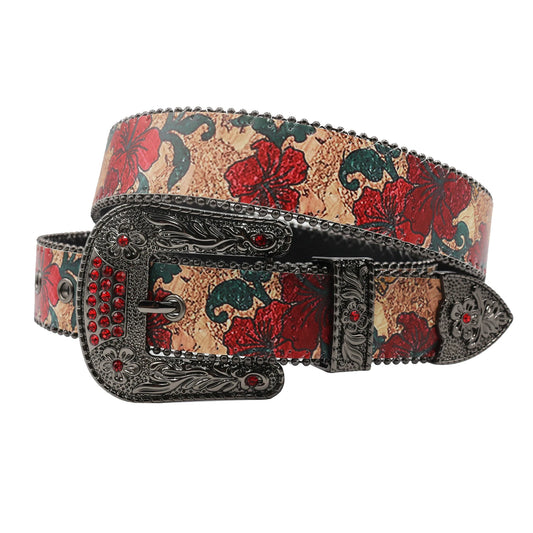 Cinturón de hebilla ancha de diamante floral para mujer y hombre