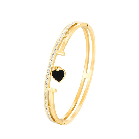 Pulsera de Acero Inoxidable de Diseño Único con Colgante de Corazón T Negro de Cristal de Alta Calidad - Regalo de Joyería al por Mayor
