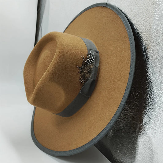 Sombrero Fedora Pintado a Mano con Ala Grande y Pluma Envuelta