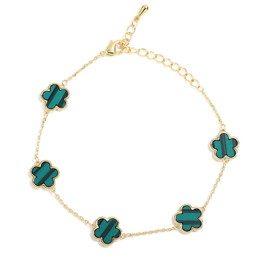 RAKOL Korean Colorful Five Leaf Flower Charm Bracelets for Women 2023 New Gold Color Stainless Steel Clover Bracelet Jewelry