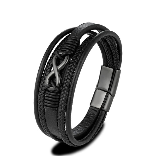 Pulsera infinito de cuero trenzado para hombres y mujeres
